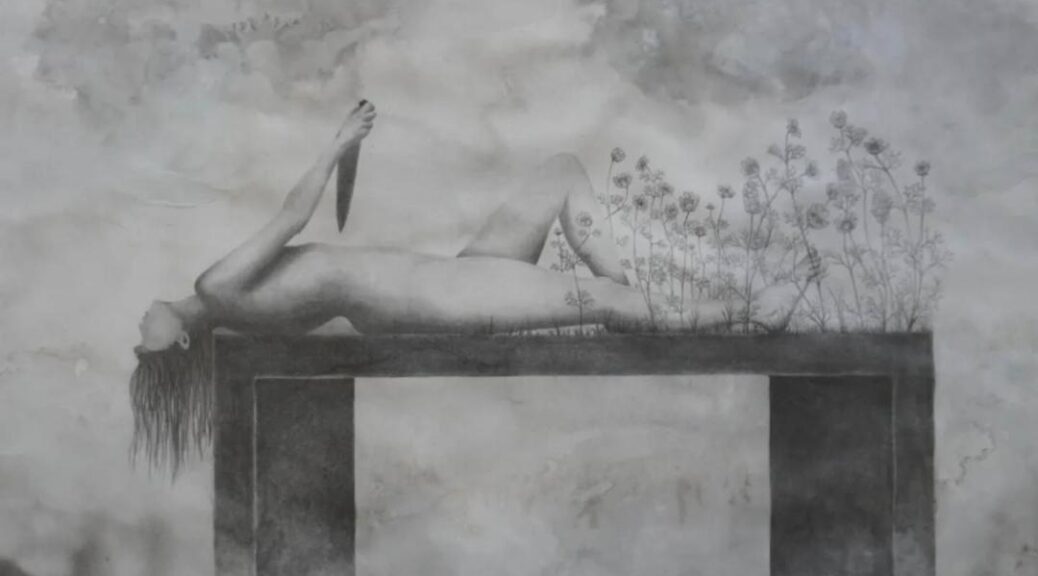 Pour preuve, il n’est pas jusqu’au « Salon de la mort », d’écraser Thanatos par Éros. Chacun des dessins de Louise Brodsky possède en effet une signification personnelle. Ce dessin (ci-dessus) détient une histoire et signe la fin d’un amour toxique, d’un sacrifice. C’est le dernier geste avant une renaissance. Il est fait d’après une photo (jamais publiée) de Irving S. T. Garp.