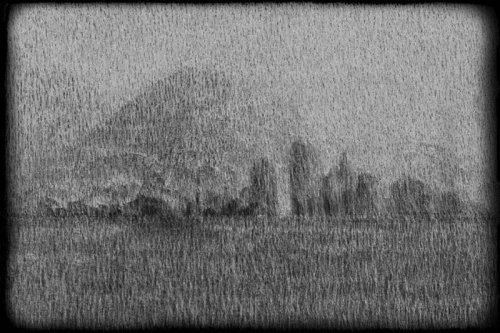 5. Dans les paysages apparaissent des signes, des écritures peut-être, illisibles. On cherche à assembler les images, puis à les superposer, ce qui rend les compositions de plus en plus denses. Finalement le noir s’installe.