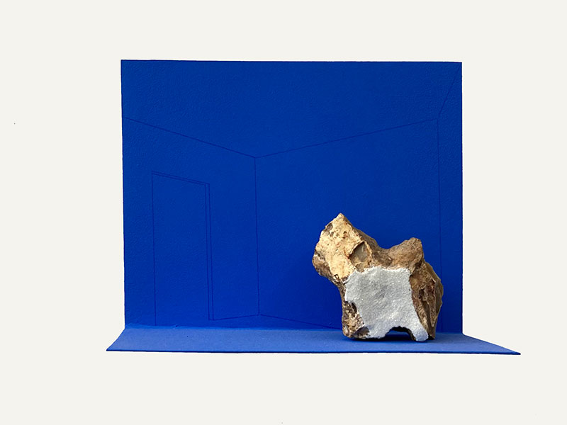 Si l’exploration des ambiguïtés de l’architecture dans notre civilisation reste sous-jacente, ces nouveaux collages, peintures, photographies et sculptures forment une réflexion tendue sur la question de l’information au sein de notre culture. Il y est aussi question d’écran, de flux d’énergie et d’une relation à réinventer avec la matière primitive de notre planète. En se jouant des stéréotypes avec une certaine poésie, en construisant une critique non dénuée d’humour, en réaffirmant l’espace de l’atelier comme lieu d’invention, il s’interroge naturellement sur la manière dont les objets et les visuels de notre quotidien tendent à proposer un monde de moins en moins ouvert à la puissance de l’imaginaire. Première exposition personnelle à Paris depuis de nombreuses années, Moving Inside oscille entre dénonciation d’un ordre ambiant et célébration du pouvoir d’enchantement de l’image.
