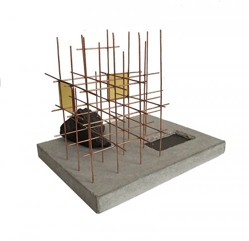 Si certains ont assimilé Bernard Calet à une sorte de moissonneur glanant dans le réel matière à production, ils oublient combien tout se joue ensuite dans l’espace de l’atelier puis dans un troisième temps dans le lieu d’exposition considéré comme la cristallisation d’un contexte. L’exposition à la Galerie 8+4 ne fait pas exception à la règle et introduit même ouvertement une dérision joyeuse sur notre temps. Impact de réel (2022) reprend la forme des palettes moulées en aggloméré mais reproduites à une échelle réduite. Elles se métamorphosent en modules permettant de composer à l’infini des propositions d’architecture. Sur ces porcelaines mates, des impacts en forme de cratères sont recouverts de platine, soulignant la dimension aléatoire de ces formes. Par ce geste iconoclaste, créer des perturbations à l’esthétique parfaite, Bernard Calet introduit la possibilité d’une double lecture. Si comme il l’affirme « Les impacts font rupture, sont fragmentés par le bruit du réel », l’objet final rejoint par la perfection de sa fabrication la cohorte des produits estampillés pour un marché du luxe. De la palette au jeu de construction, d’une forme issue du monde ouvrier à la somptuosité d’un produit du design contemporain, le raffinement du déplacement ne peut que surprendre le spectateur. Enfin, la série de sculptures Connections réintroduit dans le parcours de l’exposition la présence de l’architecture comme archétype d’un rapport du corps humain avec le réel. Pour Bernard Calet, l’architecture doit se lire comme un écran, à la fois enveloppe protectrice mais aussi surface propre à recevoir toutes les images (voire même à faire image). Dans ces maquettes qui tiennent plus de la sculpture ou de la proposition pour quelques monuments incertains de l’espace urbain, l’utopie moderniste y est niée. Ce qu’il expose est une perte de repère et une abolition des principes normatifs de l’architecture. L’œuvre n’est plus qu’une trame vide. L’humain y est exclu et le territoire réduit à un socle générique. Mais tout l’art de Bernard Calet n’est-il pas un art du nomadisme au sein d’une géographie culturelle mondialisé, un art où les savoirs subalternes sont soudain réinventés dans l’espace cerveau de l’atelier puis dans l’espace de monstration ? Ici le simple cube blanc d’une galerie y est devenu un lieu d’énonciation d’une forme de résistance à la fois poétique et humoristique.