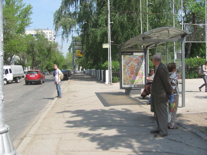À Samara, Russie, des images qui ne sont pas des pubs mais des œuvres se tiennent droites dans les abribus et font des clins d’œil aux passants.