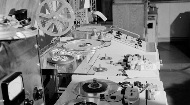 Photo d’introduction : Studio de musique concrète (1960). Les bandes son ont laissé la place aux ordinateurs et créateurs de sons électroniques. Cela donne la musique acousmatique. Photo Jean VOLCOFF