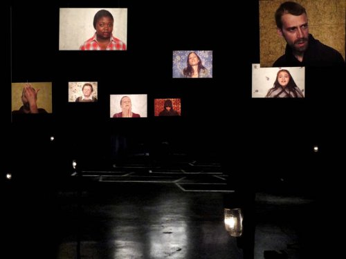 La question se pose dans Un visage, des visages puisque le choix des artistes est de représenter mais en même temps d’abstraire - la parole, la netteté photographique, la couleur en passant au noir et blanc comme le fait Nicolas Clauss - pour réduire la réalité du monde à des signes intelligibles. Pour être efficace et ne pas tomber dans le schématisme, la mise en espace est soutenue par des logiques particulières : le choix de la linéarité et du face-à-face pour Ode à neuf voix, alors que c’est dans une immersion sonore et visuelle que nous plonge Terres arbitraires.