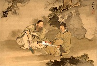 Le maître, écartant de la main quelques insectes et brindilles,