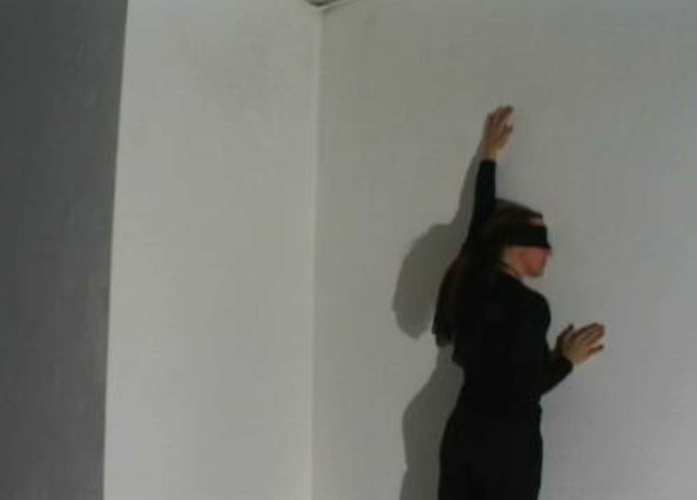 This research direction is also echoed in the Italian video installation (Public Private Perception 02 - Bologna, 2002), in which the object of exploration, again blindfolded, is the gallery where the work is exposed. Investigating with the touch a place known hitherto only through the view opens up to a reflection on how the relationship between body and environment influences the perception of oneself : the inability to see increases, on the one hand, the artist frailty within the environment that surrounds her, but at the same time it increases the ability to enter in contact with the outside, enabling her -for example- to associate colours and materials to specific tactile sensations.