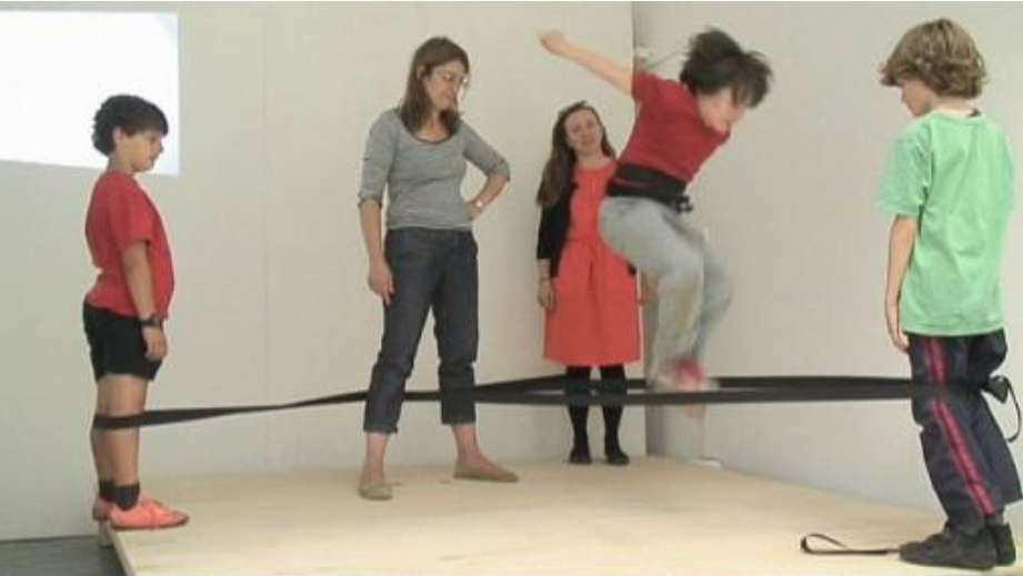 During Spac(e)ous the audience, standing on an unstable platform, is invited to carry out some given instructions and memorize the movements in space, while images of the space taken from above and other taken by a video camera worn by one of the participant flow on the walls.
