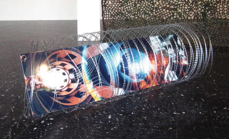 Paradise (le paradis) est ici synonyme d’Apocalypse now. Le film de Francis Ford Coppola, tout d’abord. Et du colonel Kurtz, alias Marlon Brando ensuite. Presque tous les samples (échantillons) de voix que l’on y entend sont tirés de ce film, du speech final de Brando. L’Horreur y est partout répétée. L’Apocalypse s’est déjà produite maintes et maintes fois. Et nous en sommes les survivants. C’est aussi la bande son d’une exposition, Reste et ressentiment (le Paradis) — dont nous retraçons ci-dessous le parcours — plonge aux origines de la langue pour désigner le jardin qui se ferme sur lui-même : le Paradis — se protéger ou en exclure les indésirables ? Dès lors la question posée, l’horreur guette l’intrus. Il lui faut franchir un portique tonitruant, puis un champ de mines conceptuelles, se frotter à du barbelé… Une plaque tectonique interactive ébranle l’univers sonore de cette scénographie tout en camouflage où des valises lumineuses délivrent d’étranges messages...