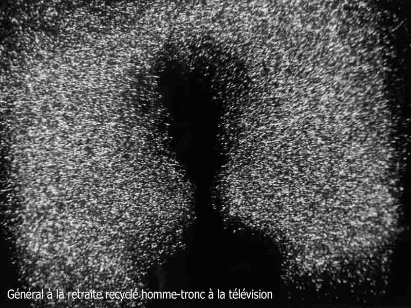 Dans le flux continu des images télévisuelles, il m’a fallu effectuer un « arrêt sur image » pour réfléchir à la situation. En utilisant la représentation fixe d’une image de mouvement, il m’a été possible de représenter la guerre, les guerres du Golfe, d’Afghanistan et d’Irak et toutes les autres même... car le caractère universel de ce type d’image permettrait en changeant les légendes de couvrir malheureusement les guerres passées, présentes et à venir, le tout sans avoir de problème pour obtenir les visas. Les notes d’humour plus ou moins noires des légendes ne sont présentes que pour endurer l’horreur.