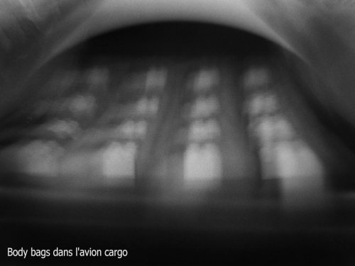 J’introduis le mouvement dans des images fixes pour signifier l’émotion face à l’événement, l’image floue partiellement « inachevée » participe à la re-création de l’image dans la tête du spectateur, re-formalise l’événement avec l’information déjà reçue et la légende guide cette reconnaissance de l’image. C’est un document historique qui est présenté et non une simple photographie, un document prouvant le « ça a été », même s’il faut l’interpréter pour le retrouver, car la légende est nécessaire pour expliquer la réalité de l’image.