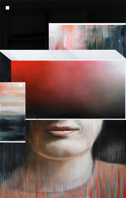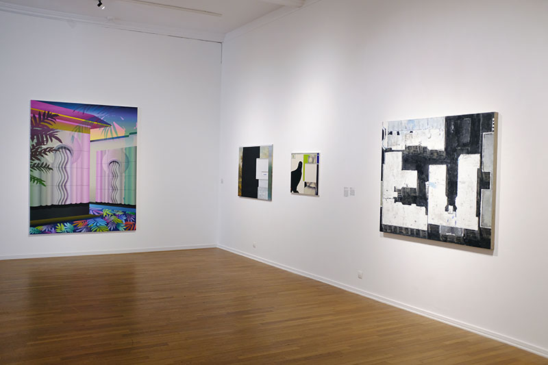 Une deuxième section s’articule autour du genre du paysage, dont l’emblème historique de la fenêtre incarne la saisissante évolution. Dans cet ensemble, il est question d’histoire de la peinture, de décor, d’artifice, de simulation et de renouveau optique de la vision. Y sont réunies les œuvres de David Reed, Flavio De Marco, Raymond Hains, Amélie Bertrand, Nina Childress, Emmanuel Moralès, Alain Jacquet, Thomas Scheibitz, Philippe Cognée, Daniel Lefcourt et Jean-Benoit Lallemant.