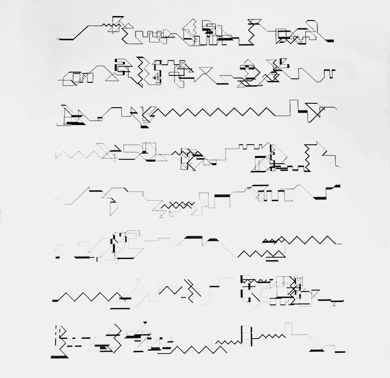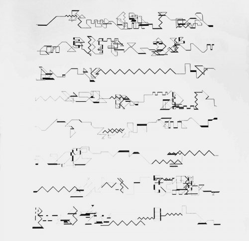 Enfin, le troisième volet de l’exposition s’attache au procédé de délégation partielle ou totale de l’œuvre à la machine et en questionne certaines conséquences paradoxales. Source d’inspiration et d’émulation pour la peinture, l’ordinateur lui offre aussi le moyen d’une analyse réflexive ou fait encore l’objet d’un usage à contre-emploi, dont l’échec est délibérément programmé. C’est à ces « jeu[x] entre contamination et résistance [38] », selon l’heureuse formule de Fred Forest, que se consacre cette dernière partie, rassemblant les œuvres de Wade Guyton, Vera Molnár, Hiroshi Kawano, Roy Colmer, Bernard Caillaud, Antoine Schmitt, Anne-Marie Jugnet & Alain Clairet, Albert Oehlen, Rémy Hysbergue, Dan Hays, Regine Kolle et Édouard Boyer.