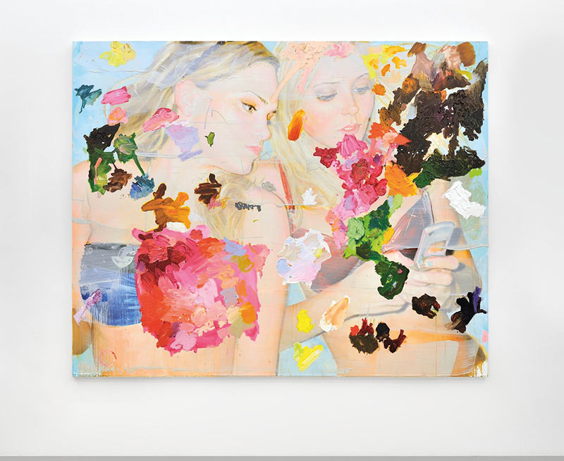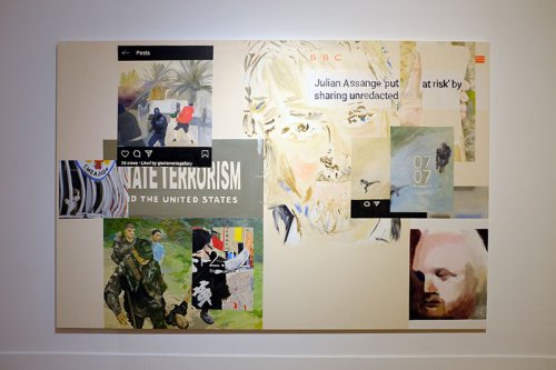 Parmi les expositions centrées sur la peinture et les technologies numériques, deux retiennent particulièrement l’attention au tout début du XXIe siècle. La première, « Glee : Painting Now » (2000 – 01), conçue par Amy Cappellazzo et Jessica Hough à l’Aldrich Museum of Contemporary Art de Ridgefield (Connecticut), défend l’idée d’un retour de confiance dans la peinture, poussée dans ses retranchements et « contrainte d’abandonner quelques-unes de ses conventions usées et de son bagage historique pour survivre face aux nouvelles technologies numériques [25] ». Enfin, il revient à « Painting Pictures : Painting and Media in the Digital Age » (2003), organisée par Gijs van Tuyl et Annelie Lütgens au Kunstmuseum de Wolfsburg, de reconsidérer le rapport de la peinture à l’image. Partant du principe que « la peinture aujourd’hui n’existe plus au sens de quelque chose de fixe ou qui va de soi (peinture, toile, pinceau) [26] », l’exposition se donne pour objectif de révéler « les diverses possibilités créatrices offertes aux peintres à l’âge du numérique [27] ». Et parmi ces possibilités, le titre revendique l’appropriation picturale des images, historiquement mise en perspective comme une nécessité ou une conséquence de l’époque :