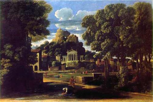 Cette « zone » ou « trouée »ne s’inscrit pas comme nouveauté moderne dans un temps naturel ou culturel et les « paysages » les plus apprivoisés de l’histoire poétique, paysages presque contemporains des dernières renaissances utopiques urbaines, témoignent, au-delà d’une harmonie néo-stoïcienne de la nature à mesure humaine et de l’humanité confiante dans les puissantes articulations du cosmos, au-delà même d’une expérience relative au temps orienté du salut, d’une inquiétude devant les proliférations organiques insensibles et face à l’engloutissement à venir. « Paysage avec les funérailles de Phocion » et « Paysage avec les cendres de Phocion » de Nicolas Poussin [Phocion (402-318), général et homme d’État, partisan du régime oligarchique, fut injustement condamné à mort à la suite d’une accusation vengeresse par les chefs du parti démocratique ; son corps fut banni d’Athènes] soulignent une apparente puissance univoque du cosmos contrastant avec le recueil clandestin de l’humanité vertueuse à l’écart de la ville inconstante et corruptrice redoutée par un contemporain lucide des deux Frondes, d’une instabilité politique grandiose et menaçante à laquelle il est difficile de se soustraire pour contempler à son aise.