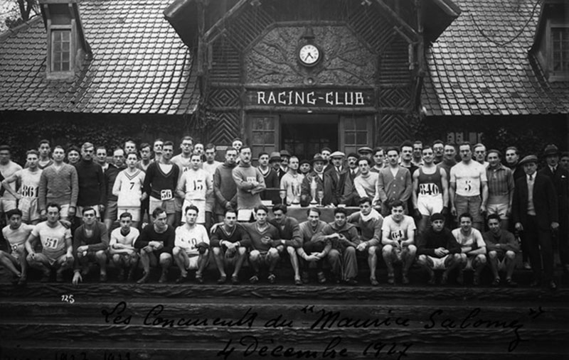 Un photographe est passé pour l’inauguration de la fédération parisienne de natation. Et les hommes se sont placés en rang d’oignons. Le cadre est large, les moustaches et les costumes variés. René est peut-être au fond avec sa casquette et son pare-dessus. Ce jeune monsieur deviendra vieux et s’en ira au cimetière à mes deux ans. En voiture il tenait la poignée au-dessus de la fenêtre côté passager pendant qu’il discutait heureux avec mon père conduisant. Il avait sauvé sa femme et perdu sa famille, il avait épousé Sarah la juive. Germaine avait aimé l’Allemand, et la mère Hélène renia ce fils qui ne croyait pas en ses livres.