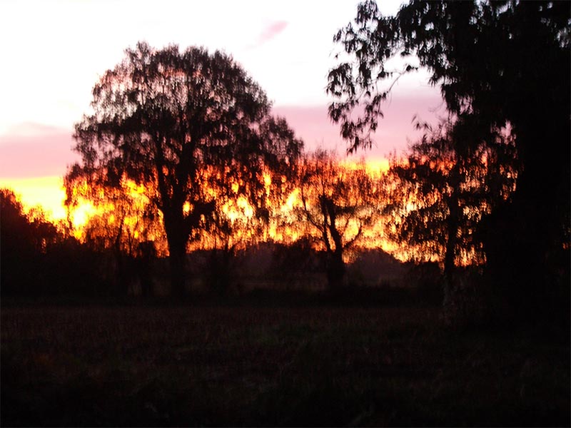 Comme si l’on cherchait à se taire en chantant, se répète une même parole en bruit de fond qui ne vient d’aucune voix et se mélange, s’écoule dans la cité des bois... Voguait alors un felouque sans voile dehors, les mats entrecroisés comme des cannes ou béquilles pour avancer plus rapidement sur le sol de touffes et d’herbes et parfois d’ornières mais soudain la felouque sans voile s’envole dans les branchages mêlés et s’emmêle à son tour, se perd comme une chance non loin de la maison subitement esseulée, isolée, perdue, la vieille dame s’étant retirée dans la terre ou bien ayant fui loin de la pénombre des sous-bois épais, infranchissables et hostiles. Mais la chasse ne la traque-t-elle pas quand au contraire des appels lointains de petites voix fluettes, charmant murmure, sous l’écorce elle se terre ? Elle ne se montre pas, elle écoute deux ou trois répétitions plus graves au fond de son terrier : « Om’, Omm’, Ommm’ ! Où vas’... », elle entend ce que j’entendis sortir du trou, son de barque-felouque voguant sur le souffle, fleuve émergeant, bulle de son rêve peut-être : « où-vas, om’ ouva ! ». Emporté doucement, lentement vers le ciel dégagé et bien au-dessus des arbres, bien au-delà de ma maison, voguaient ses mats, se laissant faire, s’abandonnant sans retenir de la voile l’envol, moi-homme dessous, sans peser de mes chaussures, lourdes car de neige, léger dans l’atmosphère du matin, clarté sans nuage qui s’élevait encore, j’entendis donc cette suite de mots, phonèmes articulés arrêtés dans leurs suite : O résonnant plusieurs fois sous les m’murmurés, au finale les O. Finalement ou dans « où vas » ou « i-ya » mal-audibles se répétaient machinalement autour, dans le milieu, autour de ma maison, du bois, du champ, de la brume et de la vieille dame enterrée, envolée qui se déplaçait non loin, sa capeline ouverte, dépliée soudain en aile de jais, voile noir à petites brillances s’éloignant jusqu’à n’être qu’un point de suie dans les yeux ouverts. Je m’allongeai sur la terre du champ, visage alors face au ciel soudainement, légèrement, au milieu des herbes doucement. Ainsi la chanson du pinson, petite voix fluette, fut interrompue par de fins crissements de cellulose, infimes voix d’enfants qui sous elle prenaient la rumeur générale des arbres, du vent, de la forêt, des buissons, des touffes, de l’envol, des oiseaux, de celui de la dame, prenaient le tout et le submergeait acquiesçant en crissant : « oui, oui, oui » sans affirmer, lentement, longuement se fondant sans fond doucement dans le champ chantant par-dessus moi allongé ainsi, en long, dans la cité volatile des plantes et me fondant dans le sans fond, m’enfonçant, gisant entre les mottes parmi les herbes...