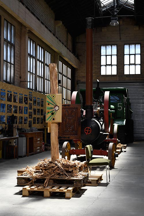 PP : Votre projet pour Decazeville repose sur une double intervention en diptyque à l’extérieur et à l’intérieur de cet incroyable musée. Vous allez d’abord peindre directement sur un mur de la façade avec la création de dessins emblématiques. Vous avez déjà travaillé sur des emblèmes que vous considérez comme de véritables outils actifs. Vous parlez cette fois de Talismans. Que voulez-vous dire ? Quels pouvoirs magiques leur avez-vous attribués ?