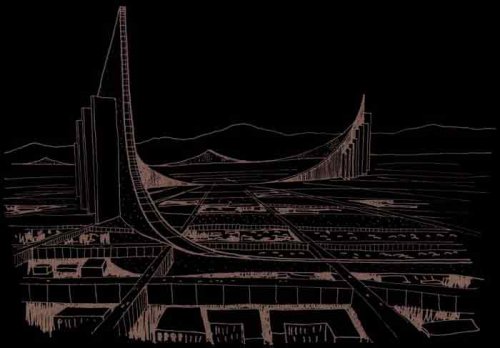 Cette triple perte ou ce triple effacement des repères majeurs que sont le sol, l’horizon et la perspective et cela donc aussi bien dans la réalité de l’architecture que dans celui de la conscience ou de la pensée, est l’un des signes les plus manifestes de l’existence de cette mutation qui, avant d’être psychique est à l’évidence concrète, incarnée, active dans la réalité même.