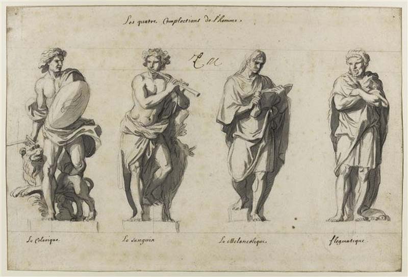 Dans son plus simple appareil, l’histoire de l’art regorge d’illustrations posées de postures afin de rendre une lecture immédiate des inclinations des personnes projetées. On charge donc LE TRAIT de caractère de dresser le personnage d’une personne - et non pas d’un individu. En guise d’exemple, les dessins préparatoires de Charles Le Brun.