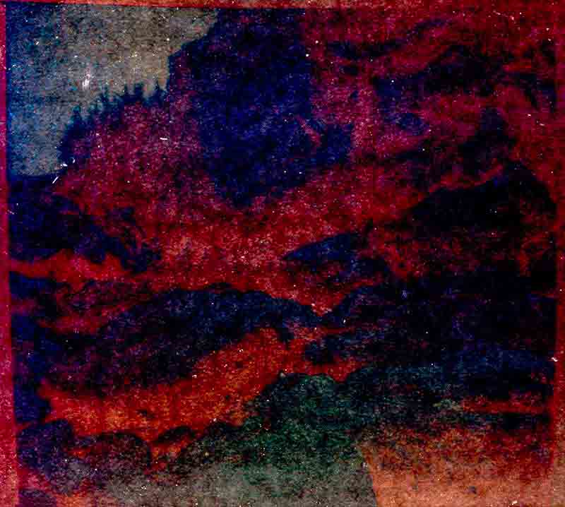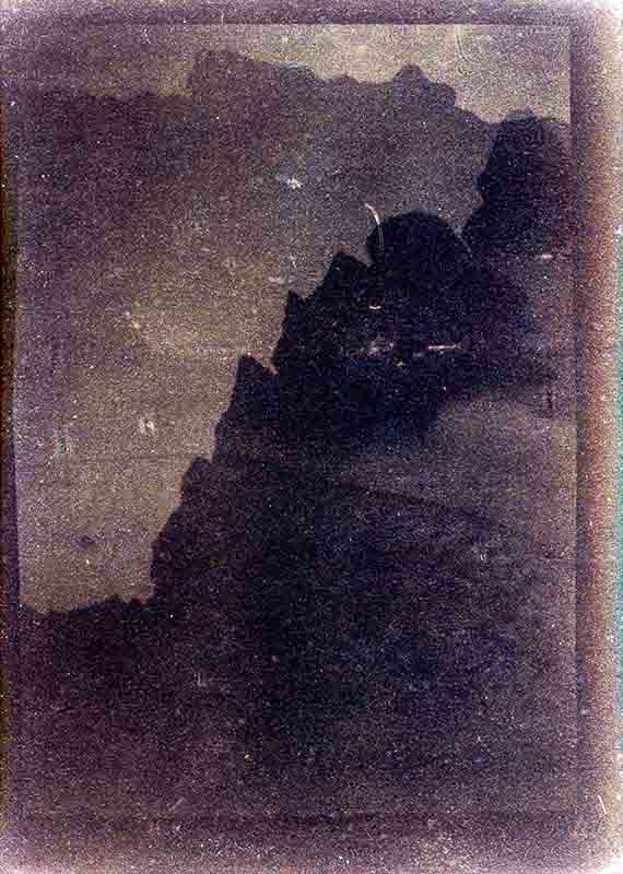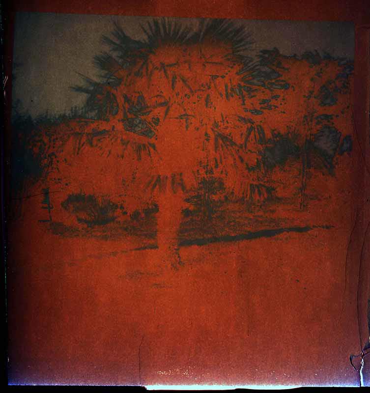 Pour tenter d’appréhender cette évolution permanente, j’utilise des procédés qui en favorisent une vision en mouvement. Je pose des boitiers avec du papier sensible et je laisse faire. Parfois il se passe quelque chose, traces, empreintes. Parfois rien. Le résultat importe peu. L’important c’est la possibilité d’une apparition, une marque différente du passage du temps. En ne figeant pas l’image dans une instantanéité, ces photographies proposent une vision poétique et intemporelle du paysage. Une vision mentale et fantasmée, sur laquelle on retrouve parfois les traces d’une certaine réalité.