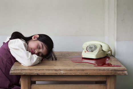 La série Slow Decay de Gohar Dashti est actuellement présentée à la Galerie White Project, 24, rue Saint-Claude à Paris. L’artiste y met en scène des personnages évoluant dans un contexte domestique ordinaire. Un liquide rouge, du sang, vient cependant perturber l’apparente quiétude des protagonistes.