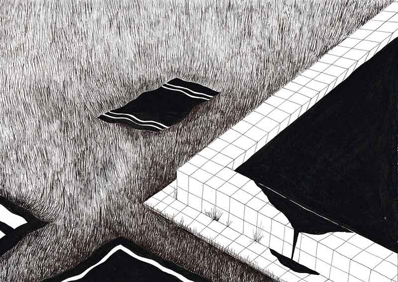 Couverture : Maria Corejova, Borders Barriers obstacles and other Funny Things Series Mind Games, Ink on paper, 2011
