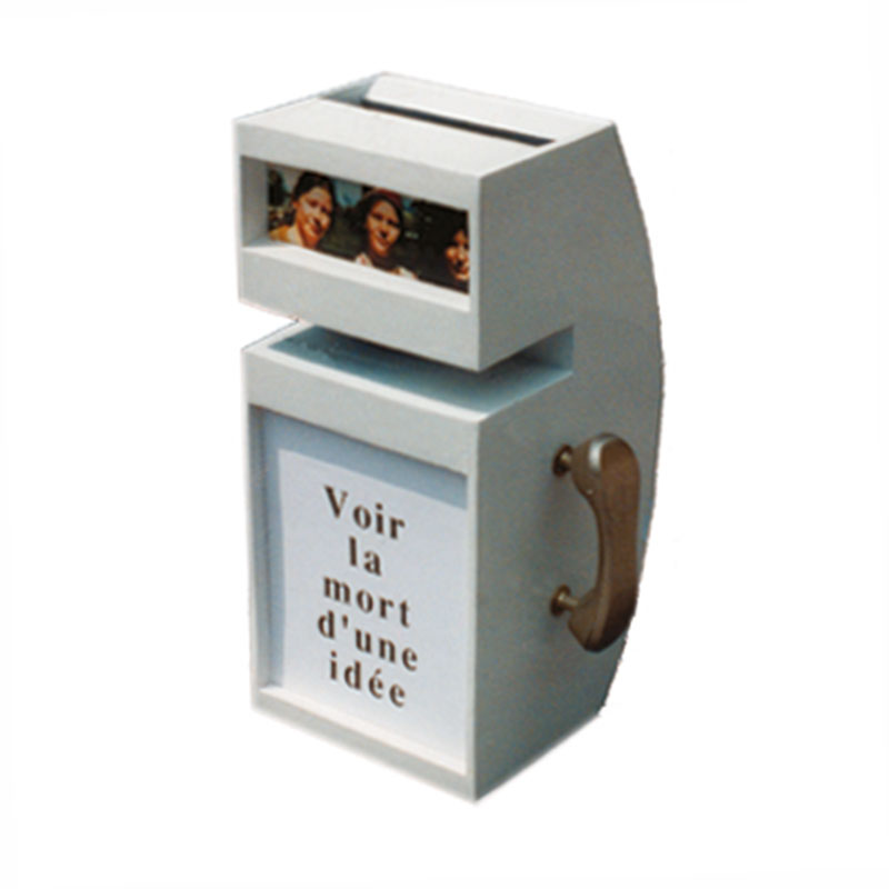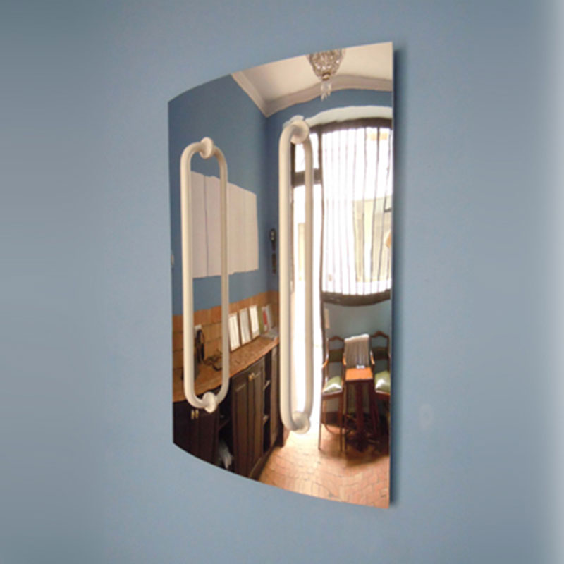 « Épousant l’arrondi du mur de la galerie, face à l’entrée, Miroir poignées convexe de Christian Globensky, version de ses Miroir poignées conçue pour cette exposition, se veut comme une mise en pratique d’une illusion conceptuelle, celle d’avoir prise sur les choses, à travers une illusion perceptuelle. Au centre du miroir dans lequel le spectateur se reflète, deux grandes poignées verticales s’offrent au saisissement à la fois manuel et illusoire d’un artefact du monde, car ce que les mains saisissent à travers les poignées ne sera jamais autre chose qu’un simple reflet. » Perin Emel Yavuz