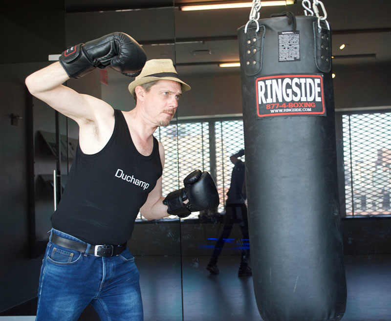 Frontispice : Portrait de l’artiste en Boxeur, micro-performance réalisée au New Museum, New York, photographie de Perin Emel Yavuz, 2017.