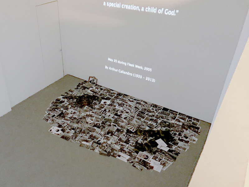 The socio-political condition between South Korea and North Korea is one of the main conceptual departures in the exhibition. The artists revisit the post-Cold War era and uncover the political landscape concerning people’s emotions, memories, and desires. The artists investigate how the hegemonic historical narrative has affected them both physically and psychologically. For instance, Sook Jin Jo placed a pile of photographs taken during the Korean War with a single-channel video in the background. The audience encounters the bloody images of atrocities during the Korean War such as a refugee with a baby strapped to her back, a crying child on the street, soldiers, dead people, etc. The video shows the parts of a speech given by American pastor Arthur Caliandro at the gathering of the US Navy servicemen during the Fleet Week in 2015.