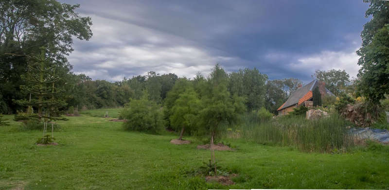 Since February 2004, along with well over a hundred trees and lesser plants sited in one section, I have systematically, and at my own expense, thus far planted 2.2 hectares (approximately 5 acres) of land along the coast on a south-facing slope that runs down from the clay plateau of the Ailly. This site is regularly flooded, and so communities of giant horsetail (Equisetum telmataiea), bracken (Pteridium aquilinum), adders tongue (Ophioglossum vulgare), Osmunda regalis and Scots pine flourish.