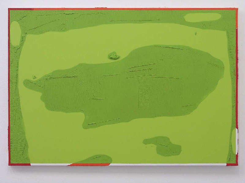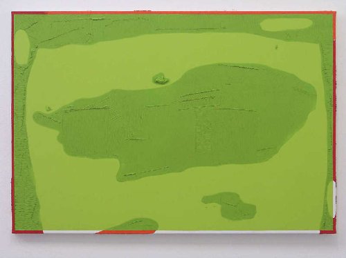 Il “segno” pittorico si trova quindi al di sotto della superficie colorata, riaffiorando come alone o come margine lungo i bordi dell’opera. L’immagine contiene in sé la propria negazione e si ri-compone come entità nuova nell’atto della visione. Lungi dall’essere cancellata o sommersa dal colore, la cartografia “nascosta” affiora sulla superficie del dipinto in modo imprevisto ed incontrollabile.