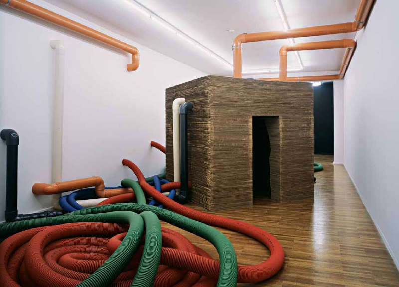 Nell’Observatorum (Valle del Bove) (Monaco, 2006) la continuità tra modulo e spazio circostante investe principalmente il suono, composto dalle voci degli altri spettatori e dalla registrazione scientifica dei movimenti del sottosuolo dell’Etna, che giunge al visitatore attraverso tubi colorati in PVC che mettono i comunicazione la basilare unità abitativa con altri ambienti.