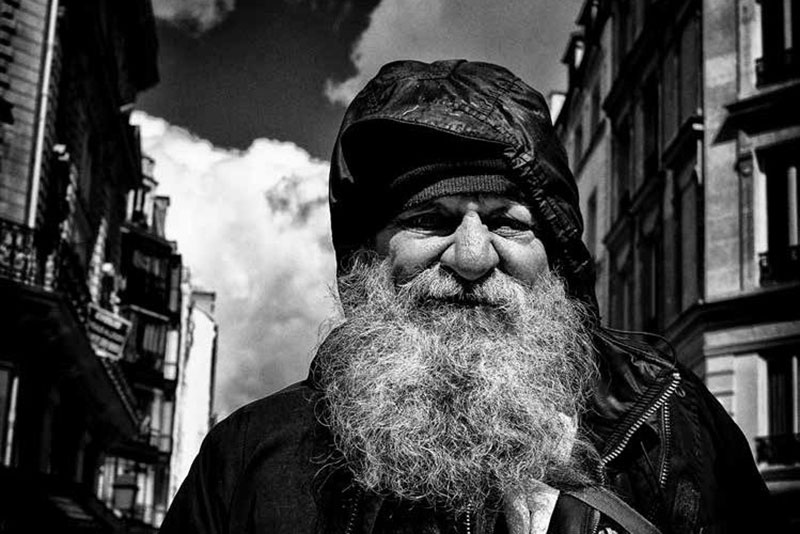 Multipliant plongées et contre plongées, mais étant tout aussi capable de capter de manière frontale, le photographe, au sein des jeux entre la lumière et l’obscur, fait jaillir une clarté d’angoisse, parfois de violence mais parfois de douceur. La rue ressemble parfois à une cours des miracles. L’artiste la photographie en plan général ou rapproché sans pour autant limiter ses prises à « du » reportage. Chaque photo devient un spectacle cérémoniel. La réalité la plus triviale n’est donc jamais donnée telle quelle. La photographie n’est pas celle d’un caniveau : elle ouvre à l’éclat de lune ses métamorphoses.