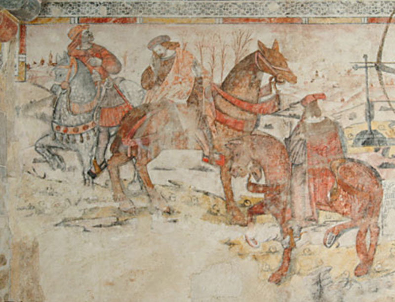 Le détour est-il une ruse ? Au Palais on s’en questionne : les ambassadeurs sont-ils là ?... La diplomatie se prélasse, elle s’étend, se détend ; et si l’on jouait quelque chose. Le soleil est haut… Ce qui attire comme les braises d’un feu, c’est la présence dans ces lieux de cavaliers. Que viennent-ils y faire ? On est pauvre par ici et c’est de rapines qu’on agrémente sa vie. Voici donc trois cavaliers qui se prélassent, n’en ferons-nous pas notre richesse ? Et c’est à coups de bâton qu’ils furent assassinés : de bien beaux jeunes gens !