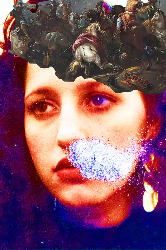 A photographic exhibition in continuous movement "on the road" In the photos I insert bright colors to represent hallucinations, phrases taken from his secret diaries, glitter describe the false illusion of drugs, mixing the past and the present.