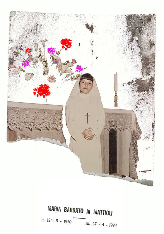 This project was born from a letter received five years after her death, it was undoubtedly her. The same words, the same way of expressing through another person, who acted as an intermediary, this letter saved me from a continuous gravitational collapse. The project is the result of a social redemption, bringing back my sister, the protagonist of a life never lived. In the photographic archive there are images of Mary in various disguises, like a real star.