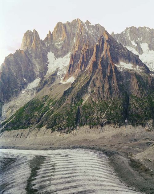 Dans les Alpes, dont l’histoire géologique commence il y a environ 75 millions d’années, les roches sont mises à jour par l’effondrement de larges blocs, érosion mécanique violente. Les glaciers se chargent de ces blocs : ils les transportent en leur sein ou sur leur surface. Et lorsque ces blocs frottent contre le substrat sur lequel coule le glacier à des vitesses de plusieurs mètres par an, le glacier polit la roche, celle des blocs et celle du substrat. L’œuvre est élaborée…