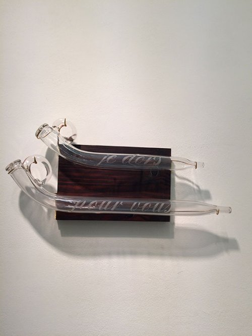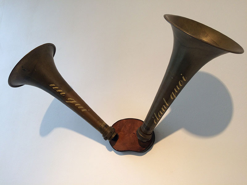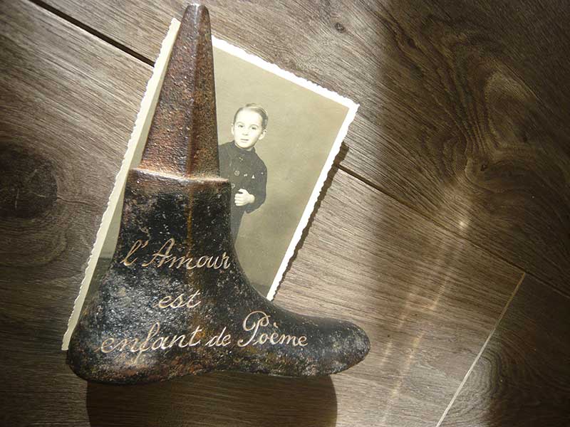 Cette chance, il nous l’a fait apparaitre et partager dans son œuvre. Son éducation russe ne le fait pas aller par quatre chemins : s’il lui faut harmoniser nouveau vocable et anciens objets sculptés, pas de peur, il fonce. L’amour des mots… que faire pour pouvoir les marier ? Il ose baptiser les objets avec des phrases poétiques qui contiennent un double/triple sens, parfois un peu grivois, son côté français qui ne connaît pas la peur que peut susciter les normes.