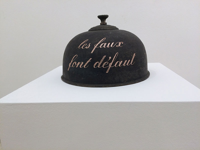 Ce qui est aujourd’hui exposé à la Galerie Lara Vincy témoigne, une fois de plus, de ce que peuvent les signes quand ils ne sont pas au service du sens « établi », c’est-à-dire communément codé. D’autres associations nous sont, en effet, ici proposées, – sur fond de combinaison du lisible et du visible –, entre les choses et les mots. Ceux-ci ne sont pas encastrés dans un cartouche, – phrases ciselées et mots cloisonnés, dirait l’auteur de Métaphonie. Le sens est ici autrement donné, lapidairement : c’est la formule brève, contre l’extrait de la somme encyclopédique, – la liberté ou la mort –, attachée à l’objet auquel il faut rester attentif. De ce croisement de l’élément figuratif et de l’élément linguistique, naît la poésie concrète où se marque le passage de l’allégorie à la matière et de l’ornement à la substance. Il en résulte, dans les présentes œuvres, une série de métaphores métamorphosées, – et de métamorphoses métaphorisées.