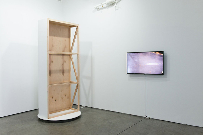 Kwon’s artistic concern about the relationship between an artist and a laborer continues to another room in the gallery. Multi-Use Wall (2014) consists of a pop-up wall made by the artist and a single-channel video that depicts his production process in museums as an installer. Although Kwon is a critically-acclaimed artist in Korea, to make a living, he works as a part-time installer in museums, building walls and stages. Kwon is both on stage and off stage as he is both an artist and laborer in the art world. For Multi-Use Wall (2014), he inverts what has been hidden and what has been spotlighted, revealing the strong irony of the art world with the capital : the artist has to not only produce critically valued art, but also work behind the curtain to make a living. Kwon reverberates between two symbolic representations–an artist and a worker.