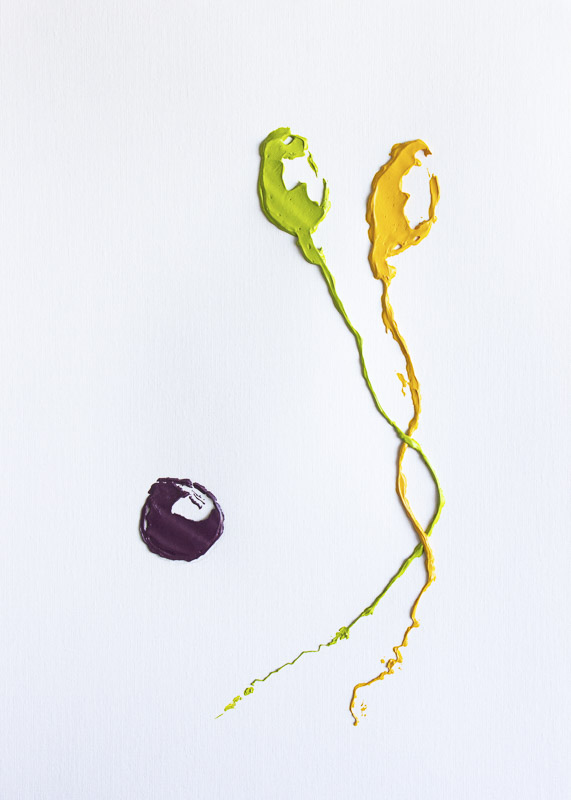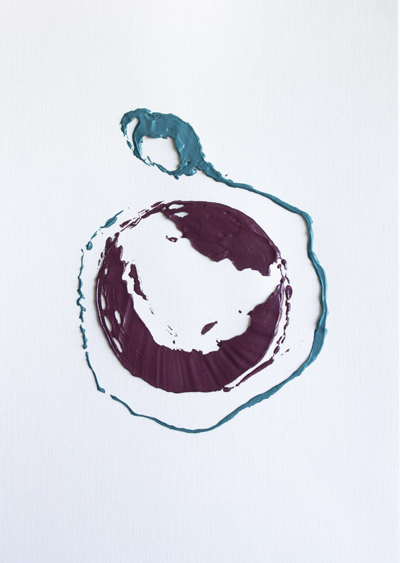Ce texte poétique de Marie Barbuscia interroge la scientificité d’un acte nominatif, capable de conférer ou non une existence aux choses : Pluton, planète du système solaire ou planète naine ? Elle opère alors une réflexion sur l’effacement, remède utile à la liberté de ton. La rencontre plastique entre les mots savamment posés et le travail de la couleur de l’artiste Alex Alayek constitue la clef de voûte d’un changement d’échelle, sa peinture du macroscopique est similaire à ce détail de matière qui s’épaissit quand il est lieu contigu à l’immensité : une poussière cosmique.
