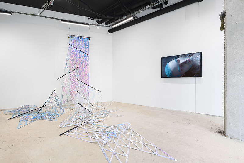 Naviguant entre fantasy et science-fiction, il donne forme à cette utopie dans Mirari : une vie retrouvée, vidéo dans laquelle il se représente en avatar elfique, dormant paisiblement dans un paysage de cendres, le corps nu, une armure de verre comme unique protection. Seul et vulnérable dans l’infini numérique, sa voix métallique scande un psaume qui invite à l’introspection, à l’acceptation des sensations et des émotions, à leur sublimation. On saisit alors la dimension autoportraitique de l’œuvre : derrière la virtualité de la scène, l’artiste lève en réalité le voile sur sa poïesis mue par l’hypersensibilité, un mouvement de soi vers les autres. Il donne à voir et à ressentir les possibles permis par l’état hypersensible, qu’il célèbre dans cette exposition comme une urgence salvatrice de notre humanité. « Enlace-toi de ces entrailles. Cette forteresse infinie : c’est pour toi ».