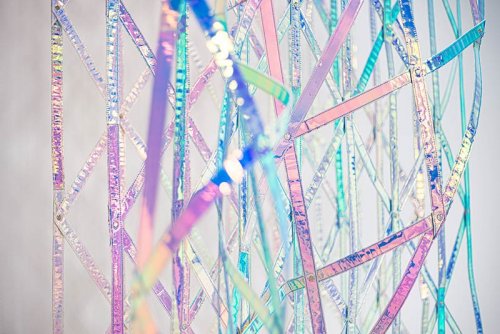 Inspiré par un Moyen Âge courtois et martial, et happé par un futur proche techno-médical, Floryan Varennes esquisse les potentialités d’une ère à venir. Une ère qui porterait la sollicitude en étendards, ceux de Sursum corda, parade de bannières à trame iridescente qui se déploie depuis le sol dans un mouvement ascendant. Chef d’une guerre sans violence, l’artiste nous guide avec ardeur dans cette élévation symbolique, celle de notre cœur, en accord avec lui-même comme avec celui des autres : il nous montre qu’un autre monde est possible, qu’un autre monde est sensible.