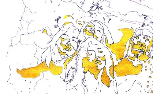 L’homme fit alors l’expérience d’un silence nouveau, celui de la fin de l’existence de ce qui n’était pas lui. Et comme ce silence était terrible et l’empêchait de dormir, il inventa de curieuses cérémonies qui faisaient écho à celles de rites anciens, et faisaient réapparaître dans de curieux travestissements, des scénographies et des danses d’imitation, les animaux, les arbres et plantes disparus.