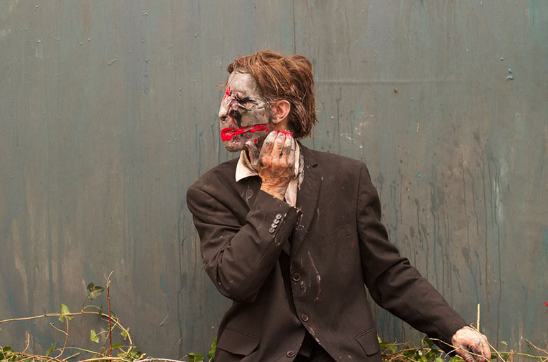 Franchir les limites, dépasser, transgresser tel est aussi le sens d’autres propositions artistiques. Elles peuvent aussi s’accompagner d’un sentiment d’étrangeté plus fondamentalement que de révolte. « Inquiéter le voir » comme le dit Georges Didi-Huberman [25] est bien ici au cœur de la proposition d’Olivier de Sagazan, Transfiguration (2016) [26], avec plus de conviction et de clarté encore. Il produit toute une variété de métamorphoses avec son visage, devenu support d’images énigmatiques, poétiques ou monstrueuses interrogeant les limites de l’humain et de l’animalité. Le travail de l’artiste prend pour appui un crâne « [modélisé] sur de la terre et de la boue [27] », défigurant l’apparence, arrachant le masque de la personne. Les identités semblent alors se succéder, se confondre, se déformer dans un seul geste. Cet arrachement conduit au morcellement. L’artiste donne à voir une multiplicité de figures étranges et inquiétantes, qui se succèdent et excèdent la figure humaine à la manière d’un Bacon dans une défiguration/transfiguration. L’artiste semble échapper à lui-même dans un véritable vertige, mêlant extérieur et intérieur.