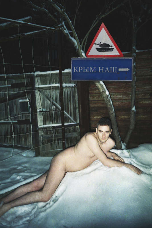 À ces photographies s’ajoutent deux vidéos. La première, d’Alexander Isaenko, procède de la même invitation : un adolescent nu nous entraîne dans la forêt, et, à travers l’image saccadée au rythme des pulsations qui l’animent, jusqu’à l’abstraction, il se fond dans les entrailles du bois (à moins que ce ne soit le contraire) et se confond à lui en un état d’âme viscéral. Dans la seconde, de Tigran Khachatryan, la nudité de l’homme accompagne les poèmes des futuristes arméniens et nous engage à la Révolution.