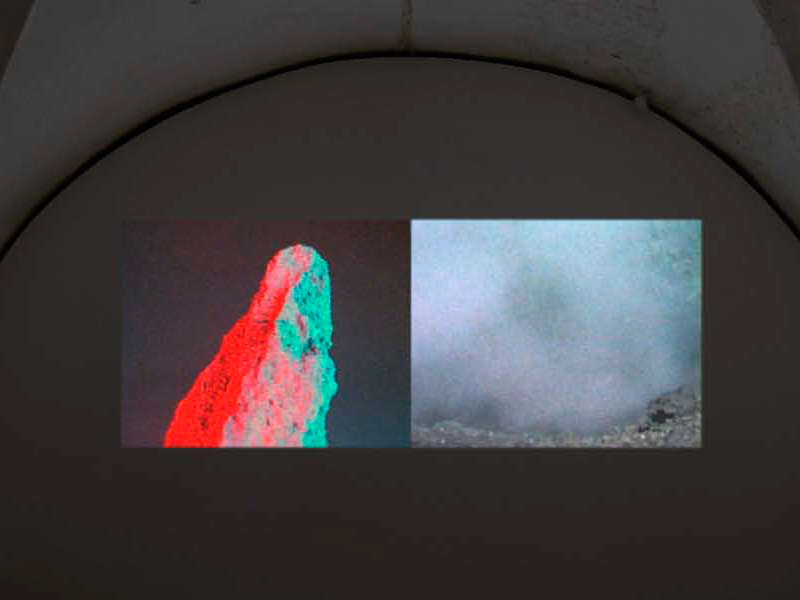 Il confine tra scienza e mito lungo cui si muovono i lavori di Arancio viene superato a favore del mito in Shasta (2011), videoinstallazione a doppio schermo originariamente girata in Super 8, ispirata all’omonimo vulcano dormiente situato in California.