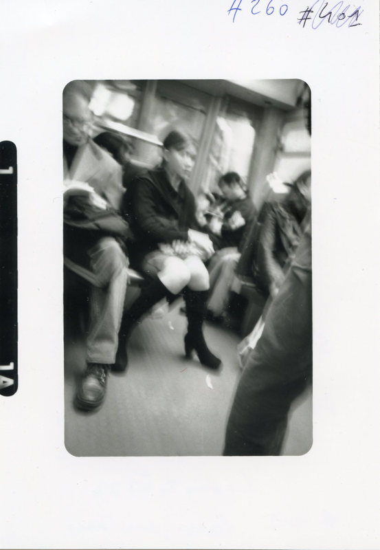 Dans les années 1930 Walker Evans a photographié les passagers du métro de New York à leur insu en dissimulant un déclencheur sous la manche de son imperméable. Avec mon Lomo LC-A j’ai quant à moi en 2000 déclenché au jugé, sans viser pour obtenir ces images fantomatiques, doucement intemporelles.