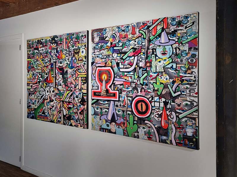 Les créations de Jessica Ciocci sont, quant à elles, à considérer telles autant de portes d’entrée dans une sphère du collectif à l’esthétique de l’excès. Celle-ci compte parmi les membres fondateurs du collectif Paper Rad qui firent grand usage, dans les années deux mille, de couleurs saturées de rouge, de vert et de bleu, en référence aux consoles et écrans de leur enfance. Quant au collage Orange Pig Hello, il est à l’image des émissions des chaines de télévision jeunesse dont les milléniaux étaient spectatrices et spectateurs. Les créations des membres de Paper Rad participent d’une forme de remix sans fin de la culture populaire de leur enfance, comme s’ils la prolongeaient en la déclinant à l’infini.