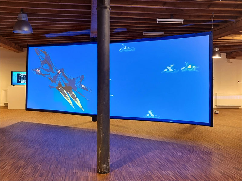 A l’époque où il collabore avec Paper Rad, Cory Arcangel déconstruit littéralement des jeux vidéo comme Super Mario, F-1 Race ou MiG-29 de l’éditeur japonais Nintendo. Sa pratique s’articule alors autour de la suppression pour ne préserver que l’essentiel. Dans le cas de MIG 29. Soviet Fighter Plane and Clouds, il ne préserve que quelques images de l’avion et du ciel. Une fois encore, l’œuvre était là, sommeillant, comme le cheval qui attend dans un bloc de marbre que le sculpteur le libère. Ainsi modifié, le jeu reste reconnaissable, bien qu’il ait perdu toute sa jouabilité. Élevé au rang d’œuvre d’art, on le contemple et c’est désormais à nous d’en raconter l’histoire. Quand on ne peut s’empêcher de penser à Roy Lichtenstein ayant lui aussi pratiqué l’extraction de chef-d’œuvres, mais de bandes dessinées.