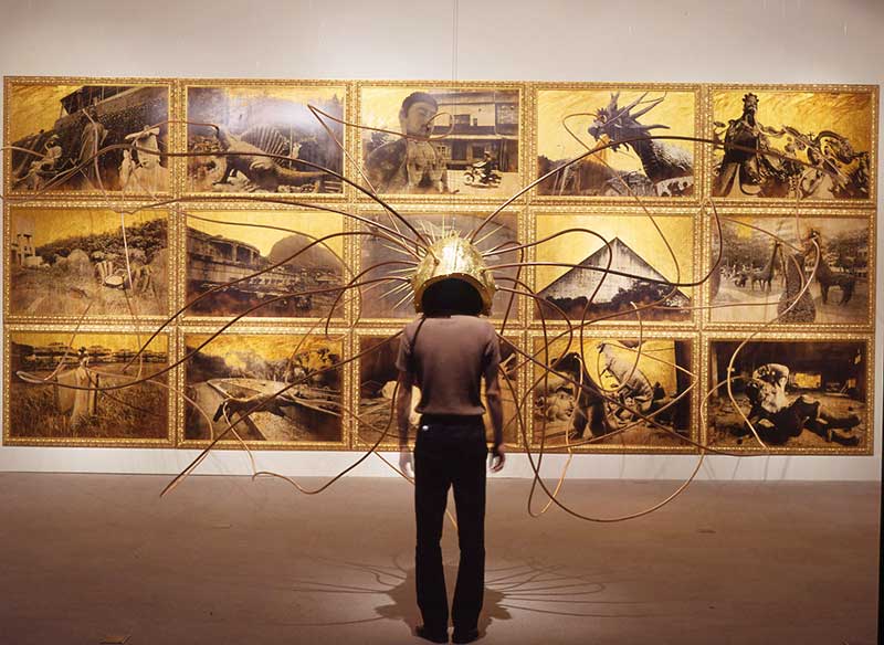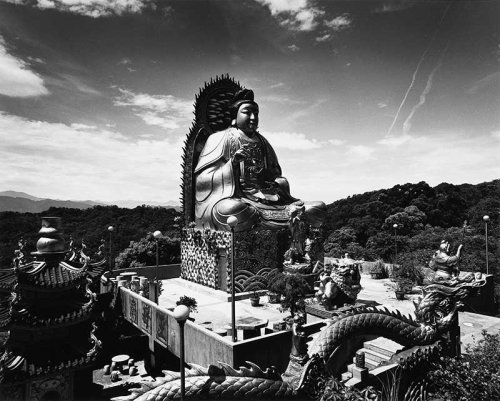 La série la plus récente de Yao est une enquête photographique sur les grandes idoles de la croyance populaire. (Fig. 9) Selon lui, il existe à Taïwan plus de douze mille temples. Ce phénomène religieux est le plus complexe de tout le monde chinois. Un temple de ce genre est souvent surmonté d’une idole de taille exagérée, soi-disant proportionnelle au nombre de ses croyants et à la force de sa divinité. Yao a voulu garder dans ses collections, des photos de plus de cent quatre-vingt temples, cimetières, parcs publics et parcs à thème, fondées sur un regard plus typologique que folklorique, et sur un point de vue plus vernaculaire qu’académique. Il évite ainsi de photographier les rituels ou les activités dont ils pourraient être l’objet pour se consacrer à la concrétisation du désir populaire dont ces idoles sont des incarnations. Avec cette série, Yao revient alors aux thèmes plus classiques de la vie et de la mort, de la vérité de ce monde et de son au-delà. Il rejoint ainsi, mais après maints détours, le point fondateur de la légitimité de la peinture de paysage de la Chine ancienne.